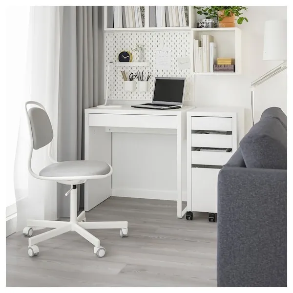 Можно расширить используемую поверхность, объединив столы и тумбы. Все эти серии MICKE имеют одинаковую высоту.