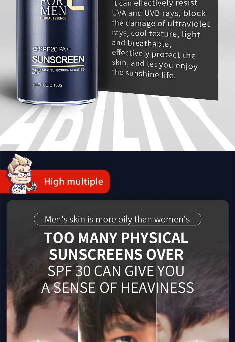 Hern мужской солнцезащитный крем для лица на открытом воздухе специальный анти-УФ спрей водонепроницаемый и анти-пот после восстановления солнца увлажняющий уход за телом молоко