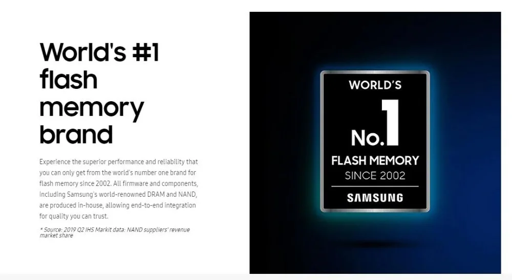 Experience the superior performance and reliability that you can only get from the world's number one brand for flash memory since 2002. All firmware and components, including Samsung's world-renowned DRAM and NAND, are produced in-house, allowing end-to-end integration for quality you can trust.