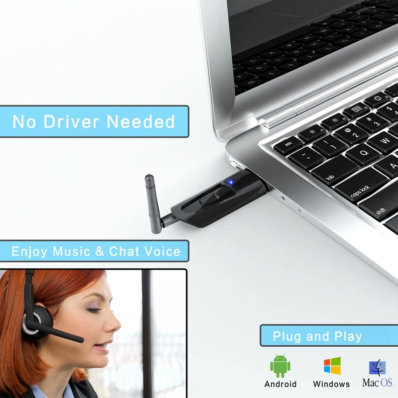 Мини Usb Bluetooth передатчик с Aptx низкой задержкой, беспроводной аудио адаптер с 3,5 мм Aux Jack для ТВ ПК, Plug & Play,Dual Lin