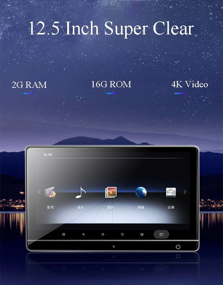 Отзывы о 12.5 inch IPS Touch Car Headrest Monitor 4K Video Player Android 9.0 Wifi Game Remote Control HDMI IR AV FM USB RAM 2G/32GB ROM - купить по