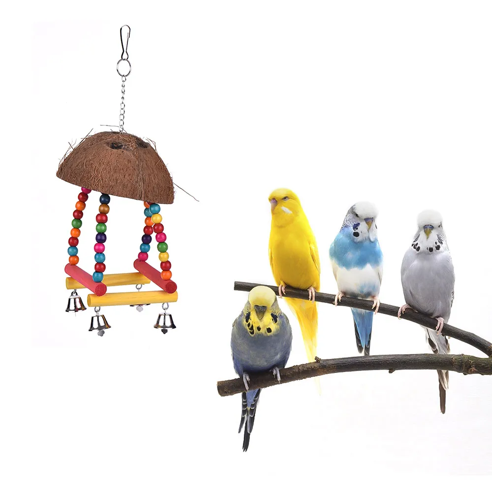 Многофункциональная игрушка: жевательная игрушка для попугаев, Висячие качели для клетки, окунь для клетки, удобное гнездо для попугая.