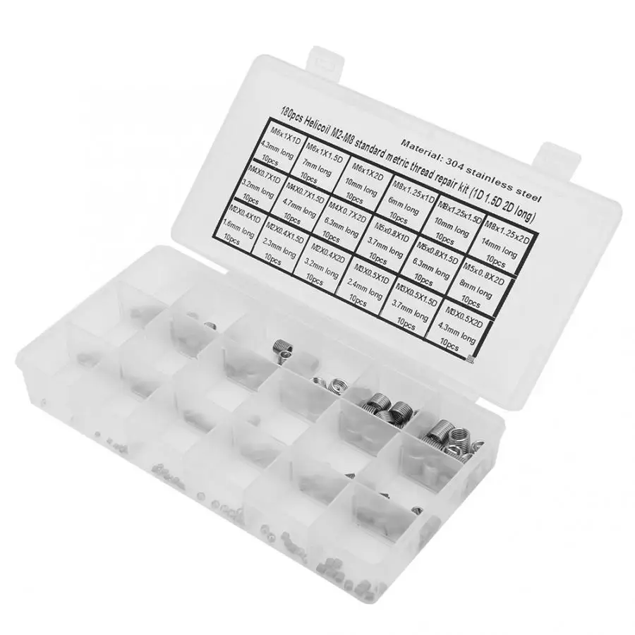 180 шт. проволочная Резьбовая вставка из нержавеющей стали резьба Ремонтный инструмент M2-M8