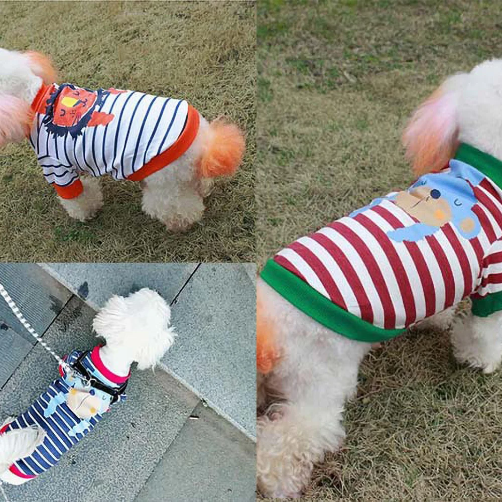 Эта футболка изготовлена из хлопка и напечатана с милыми и милыми изображениями героев мультфильмов, что не только позволит вашему питомцу чувствовать себя комфортно, но и сделает щенков более красивыми и милыми. Кроме того, стиль в полоску сделает вашего питомца модным.