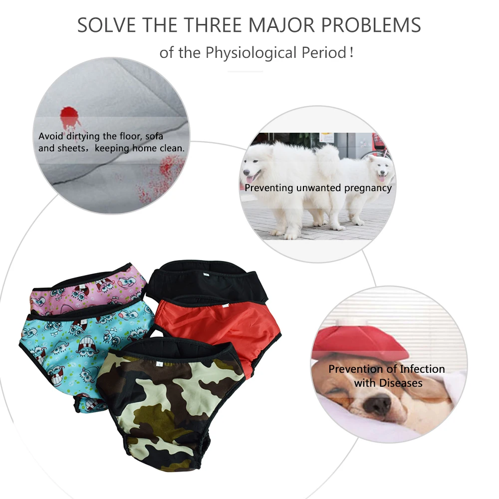 Безопасно для вашей милой собаки: материал дышащий, позволяя собакам менструального периода держать его в чистоте и предотвращать бактериальную инфекцию, а не мужские собаки.