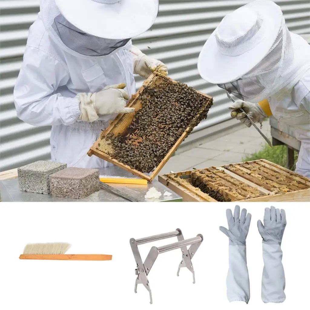 [Прост в использовании]Идеальный медовый комплект для сбора новых пчеловодов! Этот набор из 4 инструментов поставляется с курткой пчелы, держателем оправы, щеткой пчелы и перчатками для пчеловодства.