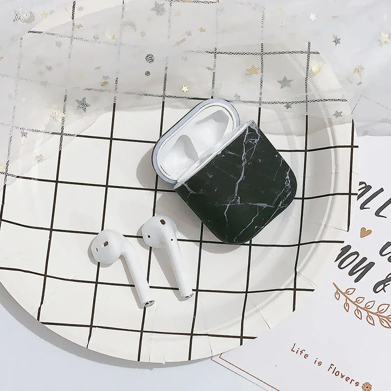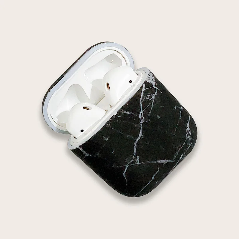 Отзывы о Interesting black marble texture airpods protective cover Hard sticker Apple wireless Bluetooth headset shell |