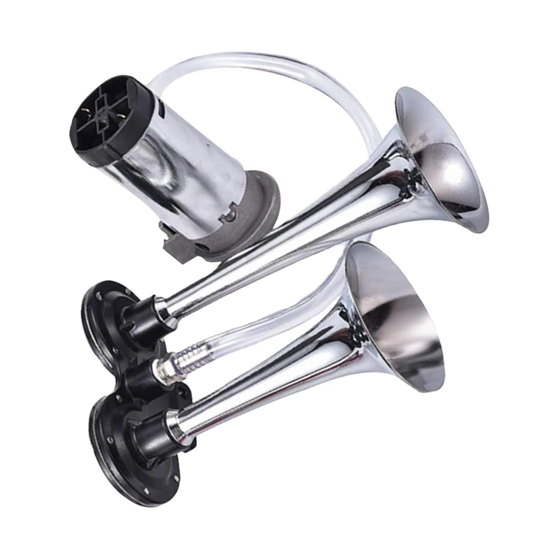 150 дБ автомобильный воздушный рожок комплект, супер громкий двойной тон хромированный цинковый двойной раструб воздушный рожок с компрессором для любых автомобилей 12 В