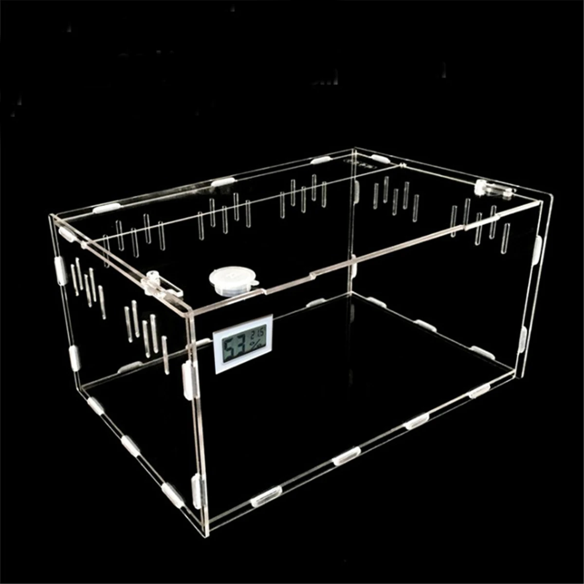 Название: Рептилия насекомых пауков акриловая клетка прозрачная коробка для разведения Vivarium крышка разведения с температурой и измеритель влажности