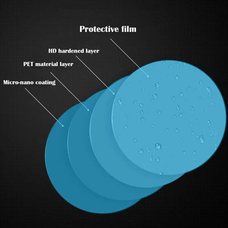 5. PET + Nano Защитная пленка с коэффициентом пропускания 99%, анти-туман, Антибликовая, анти-туман, водонепроницаемый, непромокаемый, который эффективно четче вашего зрения и лучше смотреть в дождливый или туманный день.