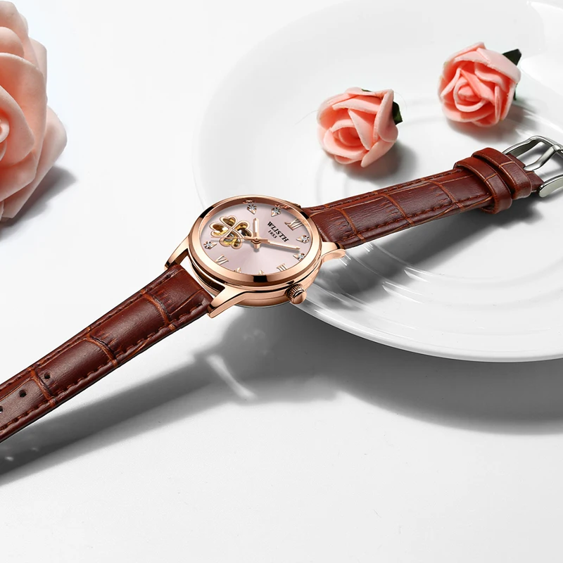 Отзывы о Женские часы с розовым циферблатом креативные автоматические механические