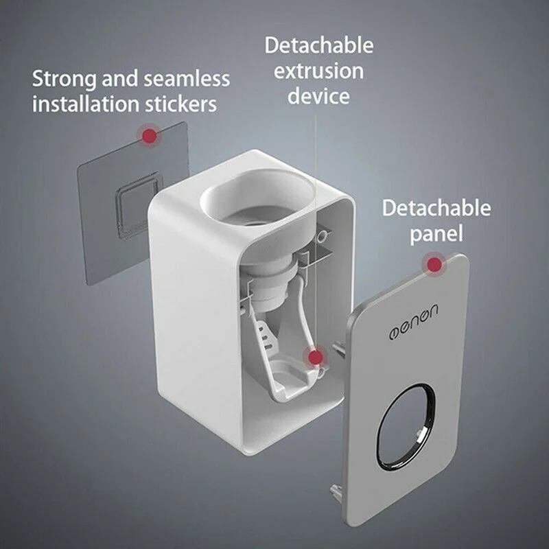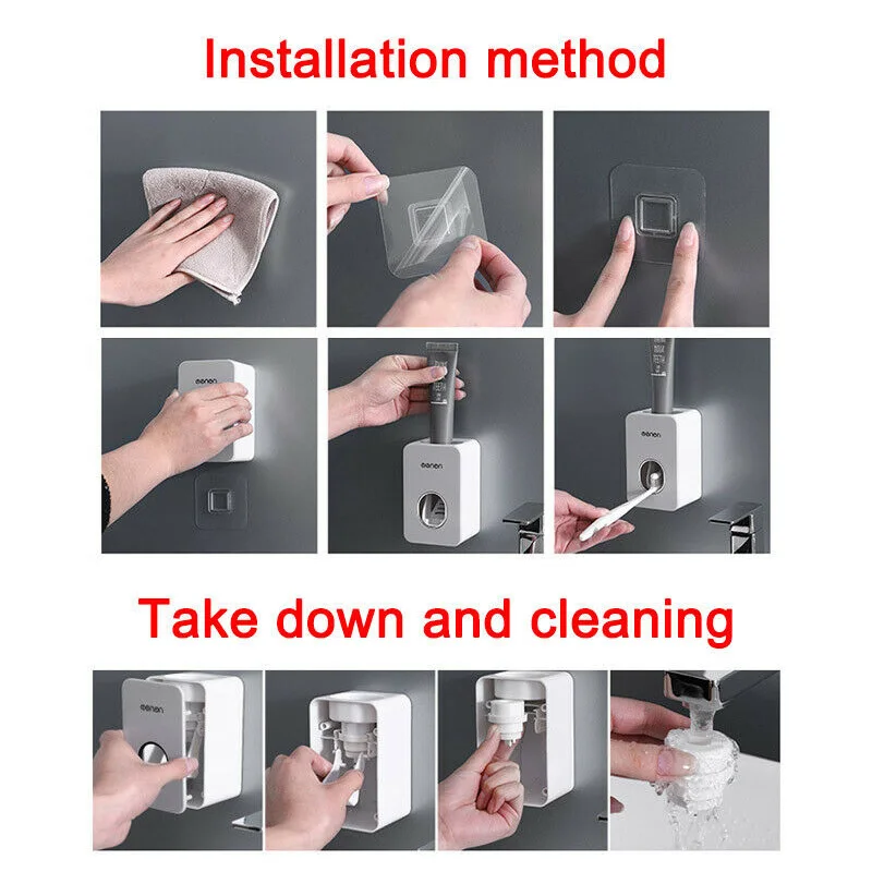 Дозатор зубной пасты составляет всего 11*7*6 см/4,32*2,75*2,36 дюйма (Д * Ш * В), компактный и компактный, что обеспечивает полное использование вертикального пространства.