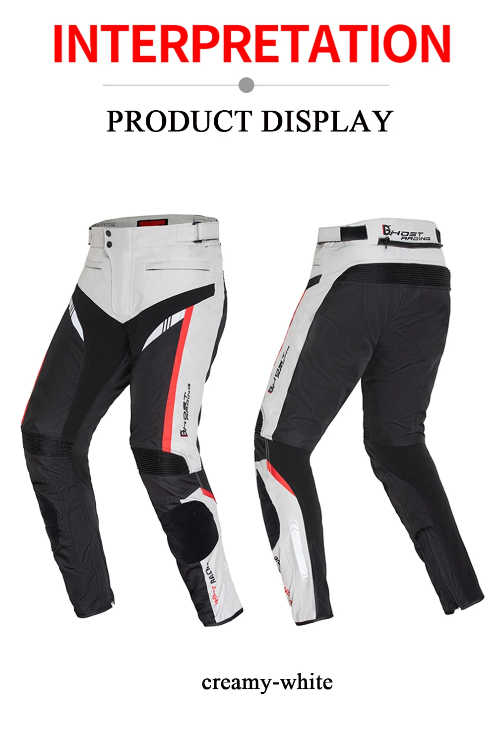 GHOST RACING Men's Motorcycle Pants Winter Warm Motorcross Riding Pants Protective Gear Hip Sponge Protection With Kneepads