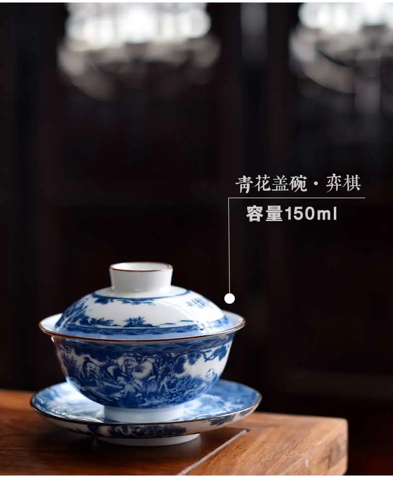 Отзывы о Сине-белая фарфоровая чаша с крышкой чайница большой чайный сервиз Кунг-фу