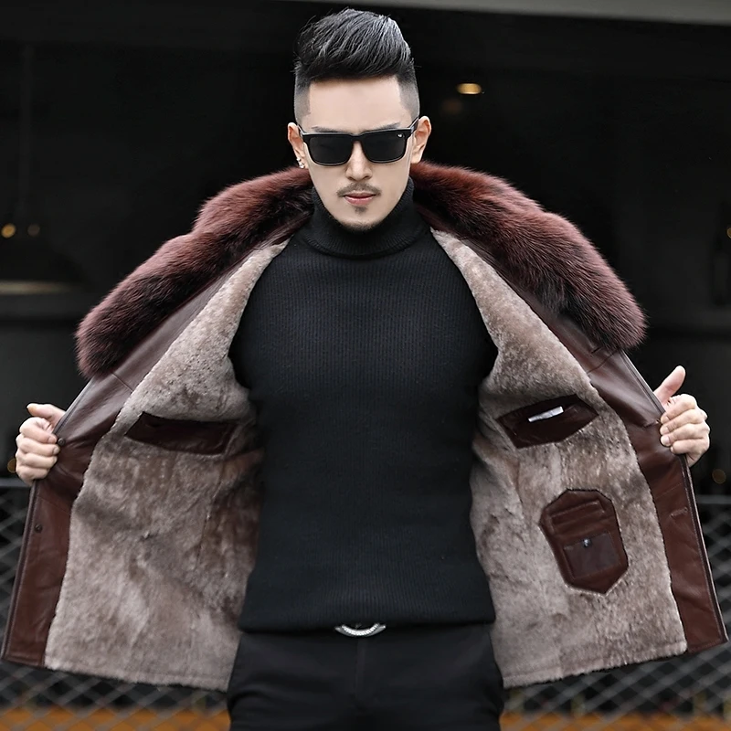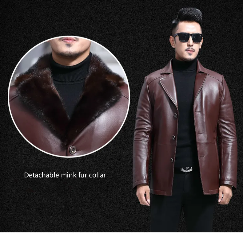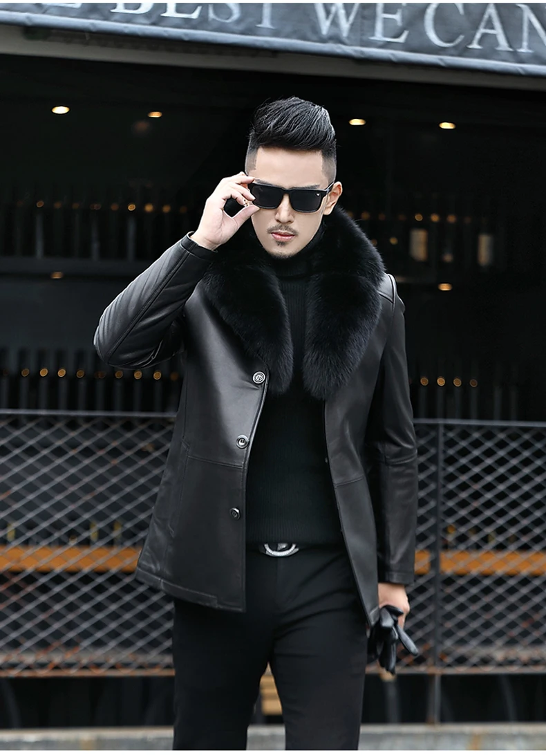 Отзывы о Мужская куртка из натуральной кожи с подкладкой меха норки воротником лисьего