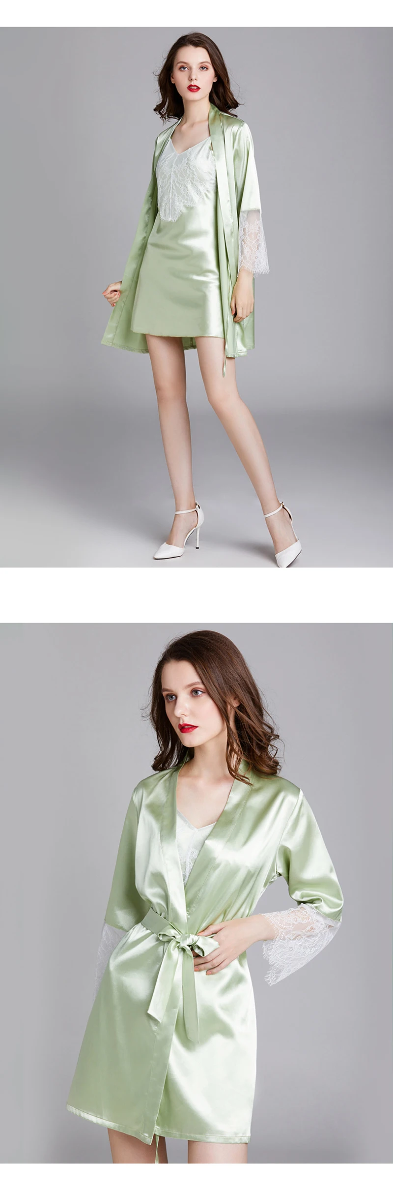 Отзывы о SSH0416 2020 новый комплект ночного платья женский сексуальный кружевной атласный