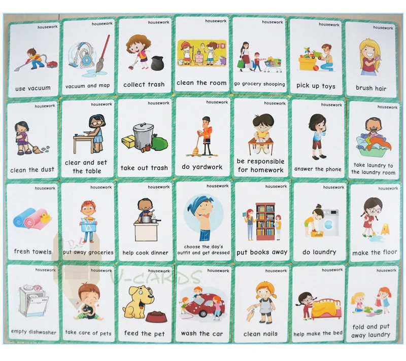Описание товара: Название: Английское слово Возрастной диапазон: для детей от 3-х лет Материал: односторонняя печать, водонепроницаемый, анти-складной и обработка филе без царапин Узор: домашняя работа Размер: около 13*10 см Посылка включает в себя: 28 * шт флэш-карты Фотографии: