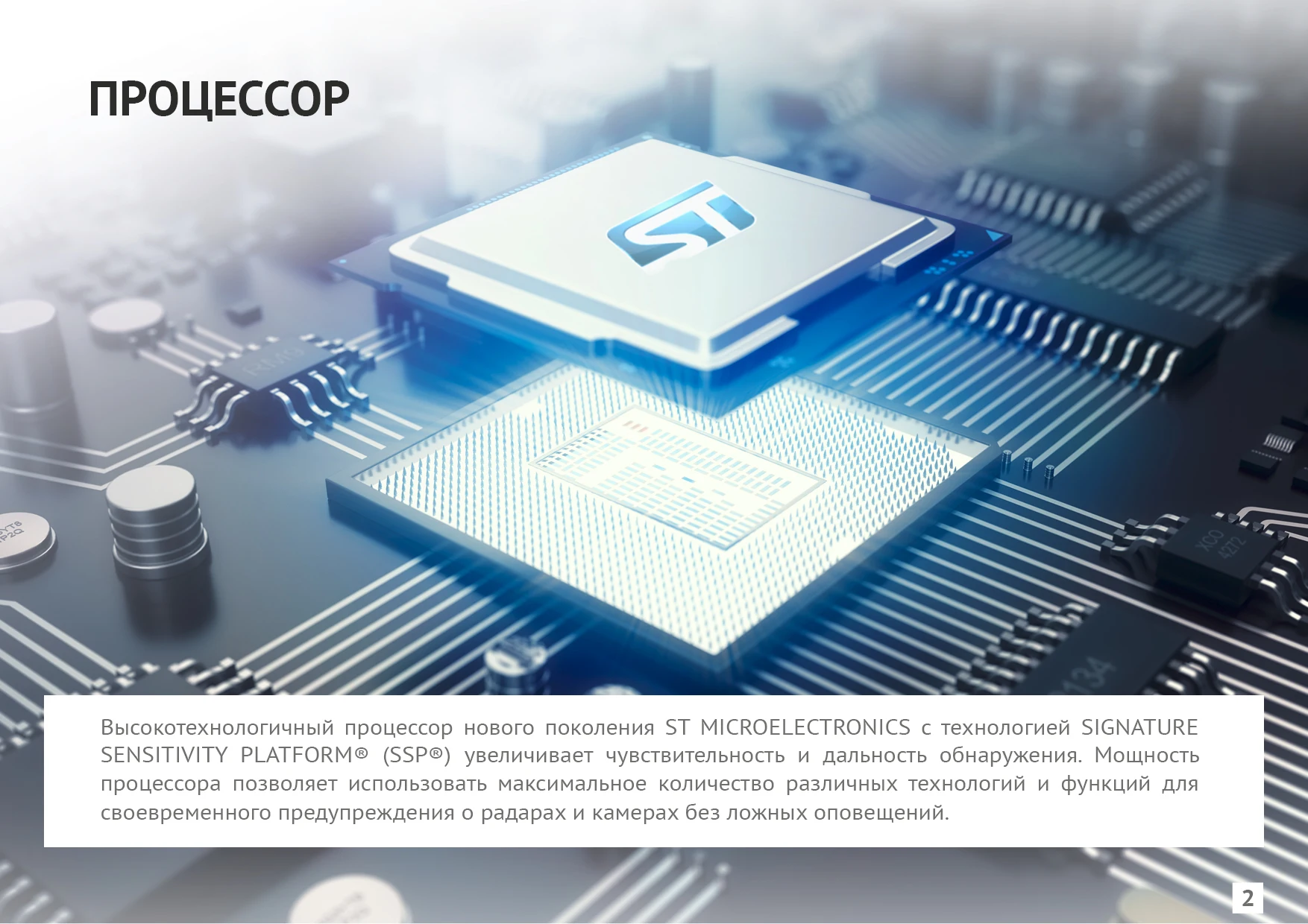 В устройстве установлен радарный модуль второго поколения на базе высокопроизводительного процессора ST Microelectronics с технологией Signature Sensitivity Platform (SSP) увеличивающий чувствительность и дальность обнаружения.