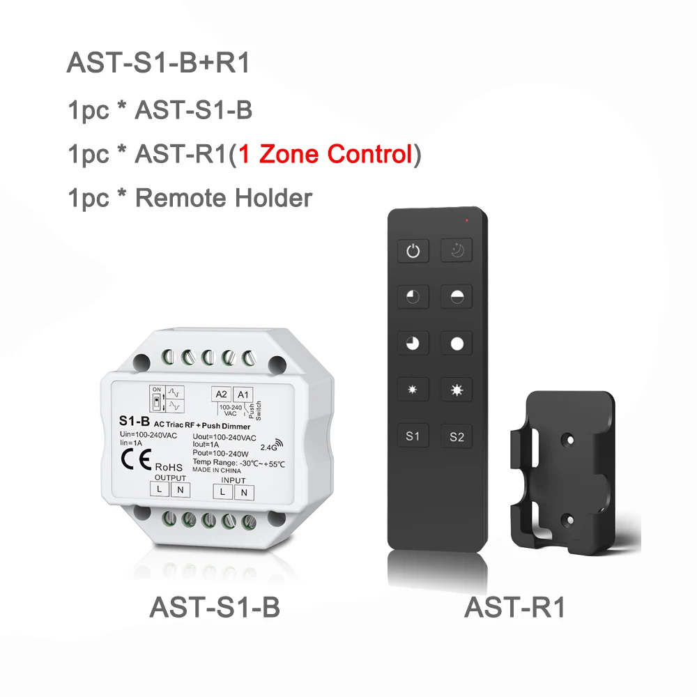 ● Фазовый диммер RF + Push AC, 1-канальный выход. ● Для затемнения и переключения одноцветных диммирусветодиодный ных ламп, традиционныеЛампы накаливания и галогенные лампы. ● Затемнение передней кромки или затемнение задней кромки, установленное dip-переключателем. ● Минимальная яркость может быть установлена ключом. ● Совместимость с диммирующим пультом дистанционного управления Skydance 2,4G. ● Подключение к внешнему нажимному переключателю для включения/выключения и затемненияФункция. ● Легко вставляется в стандартную настенную коробку 86*86 мм. Технические параметры: ТРИАК LED диммер (S1-B) Входное напряжение: AC100-240V Выходное напряжение: AC100-240V Выходной ток: макс. 1 А Выходная мощность: 100-240 Вт Входной сигнал: RF 2,4 ГГц + тусклое нажатие Уровень затемнения: 256 уровней Диапазон затемнения: 0 - 100% СВЕТОДИОДНЫЙ пульт (R1) Выходной сигнал: RF 2,4 ГГц Рабочее напряжение: 3 В постоянного тока (CR2032) Рабочий ток: <5 мА Ток в режиме ожидания: <2 μa Время ожидания: 2 года Дистанционное расстояние: 30 м