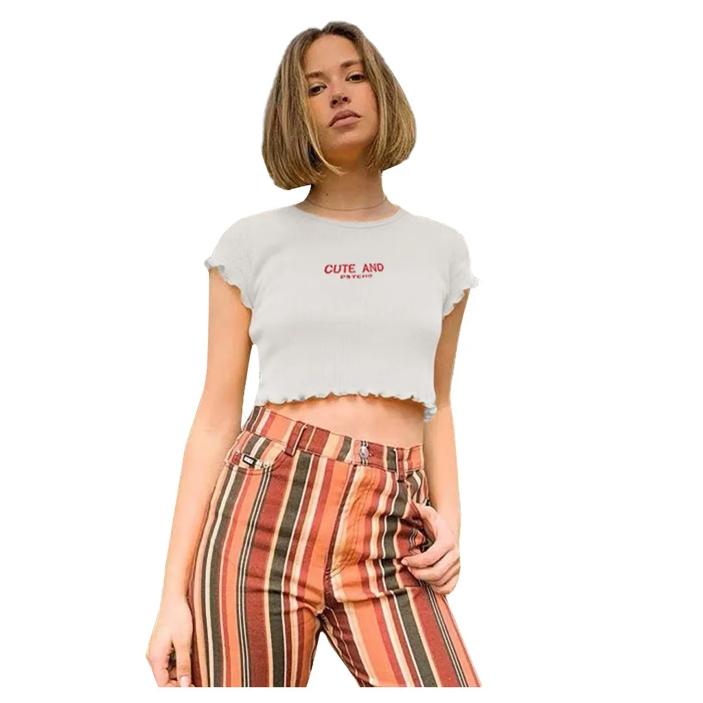 Женская Кружевная футболка с коротким рукавом и буквенным принтом, Женская Повседневная Уличная майка