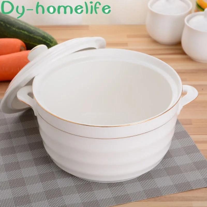 Скандинавские пномпеньские нитки, Круглые двойные уши, керамическая чаша с крышкой, кухонный бытовой костяной фарфор, суповый горшок, большая чаша, тушеная чашка
