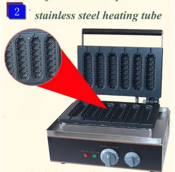 Corn Dog machine commercial lolly sausage Waffle Maker NOTICE: This item is free shipping to most countries. Before you place the order, have a look at the country list to see if your country is in the free shipping list. If your country not in free shipping list, please ask me to quote you a shipping fees. Technical parameters of muffin hotdog machine Volts: 220V/110V 50Hz Power: 1.5KW Dimensions : 410x310x250mm Waffle size: 142x38x38mm Packing size:520x390x330mm Material: stainless steel (#304) N/W:11Kg G/W:13Kg Operation steps of muffin hotdog machine 1.Muffin Cake flour 1000g,Salad,eggs and watter stir to be paste.then,put the paste into Pre-heat mold\'Slot,just half. Preparation of muffin hotdog machine Detail photos of muffin hotdog machine