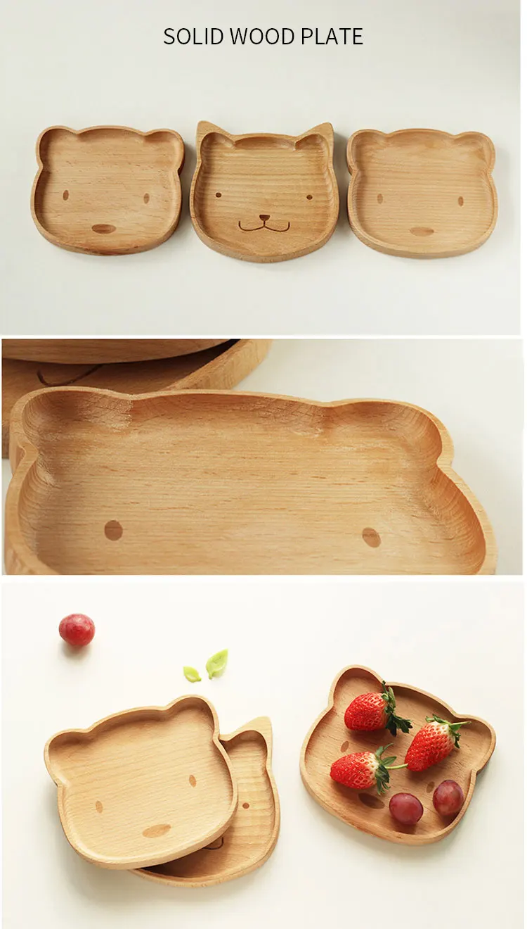 Отзывы о Обеденная тарелка из массива дерева с изображением животных котенка медведя