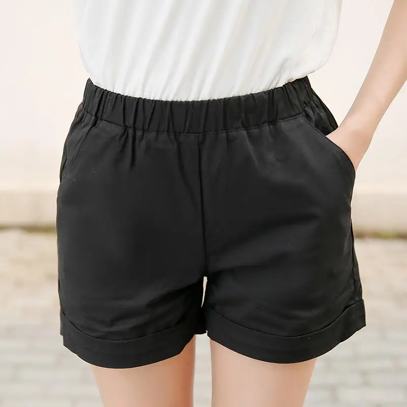 Отзывы о Шорты женские однотонные прямые из хлопка повседневные с эластичным поясом