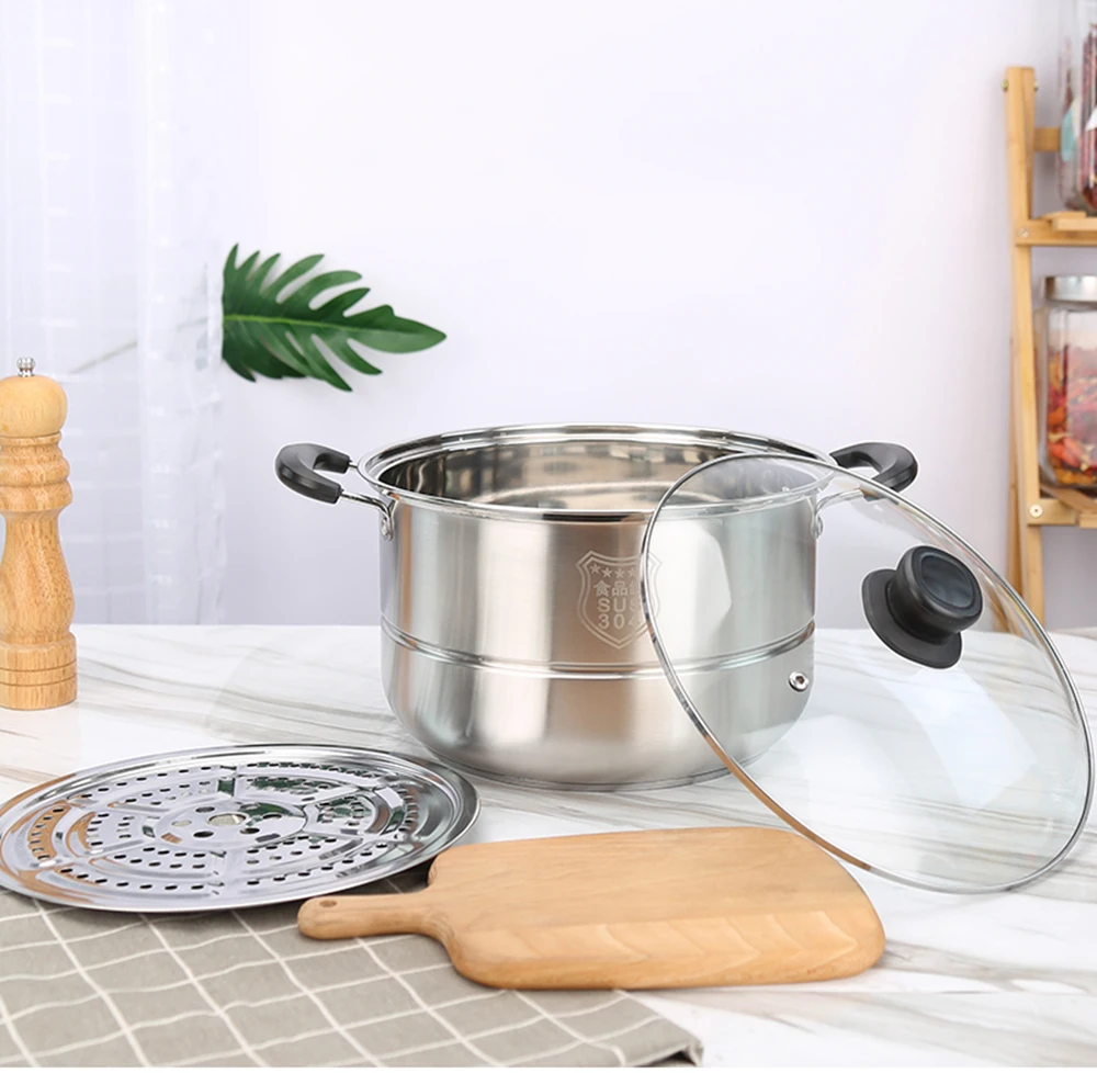 Бубле котел 26-30 см из нержавеющей стали утолщаются 2-3Layer Пароварка индукционная плита Кастрюля со спуском пара суповый горшок для дома Многофункциональный