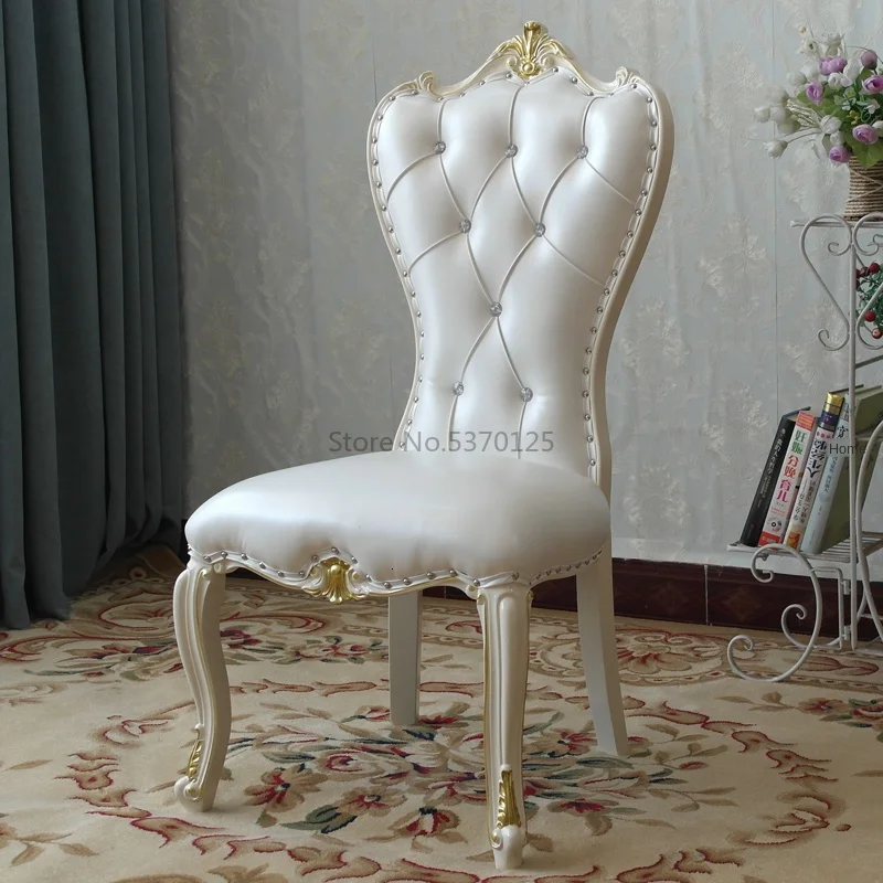 Европейский обеденный стул современный твердый резной мягкий мешок ткань кожаный стул ресторан отель ногтей белый задний домашний стулUS $127,63 /