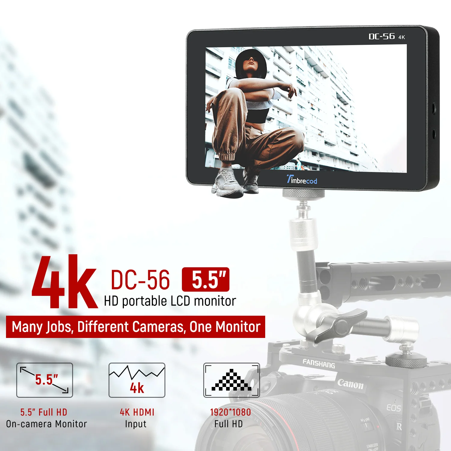 В DC-56 представляет собой 5,5-дюймов UHD для контроля уровня сахара в крови с разрешением до 1920*1080 пикселей. Его можно использовать в беззеркальных камерах или цифровой hd-видеокамере для отображения видеосигналов HDMI с камеры в режиме реального времени. Он может удовлетворить профессиональные требования фотографа к качеству изображения высокой четкости.