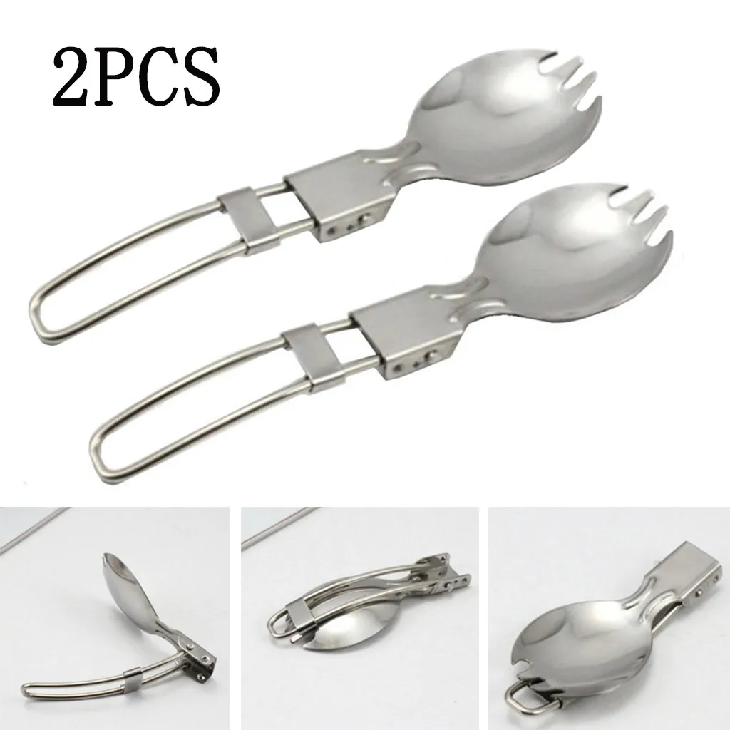 - 2 xСтоловые приборы из нержавеющей стали Складная ложка двойного назначения с вилкой портативная вилка ложка