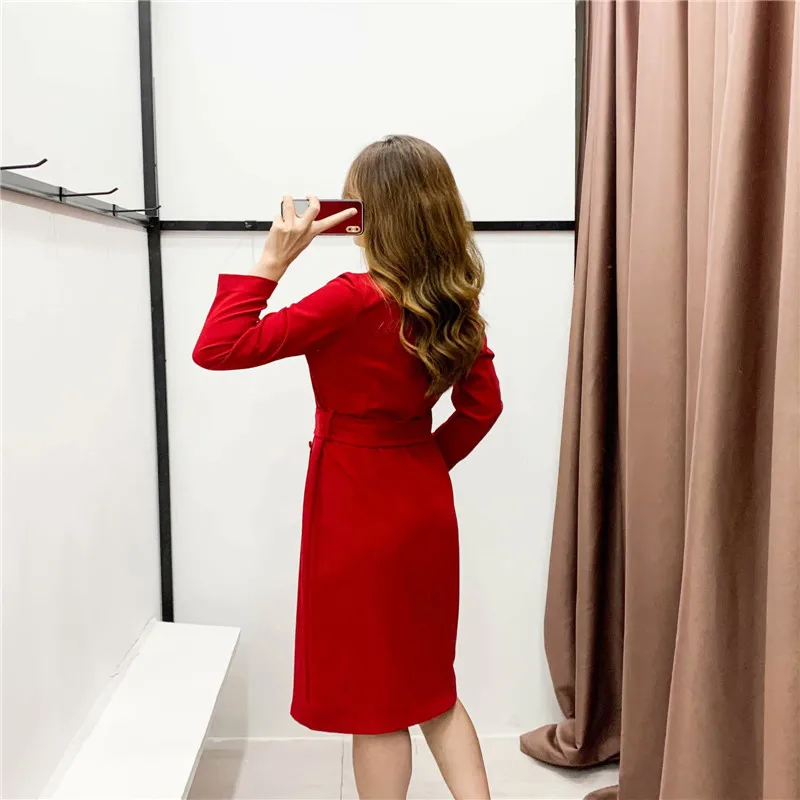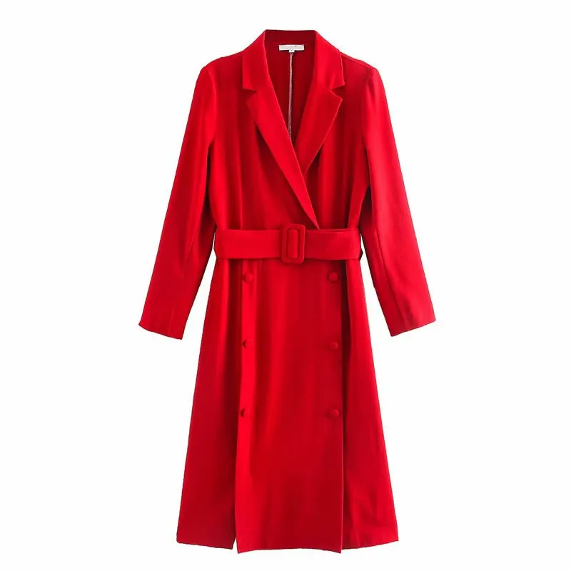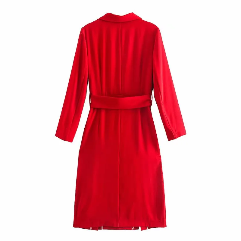 Отзывы о Женский Элегантный Красный Блейзер платье миди с длинным рукавом и поясом