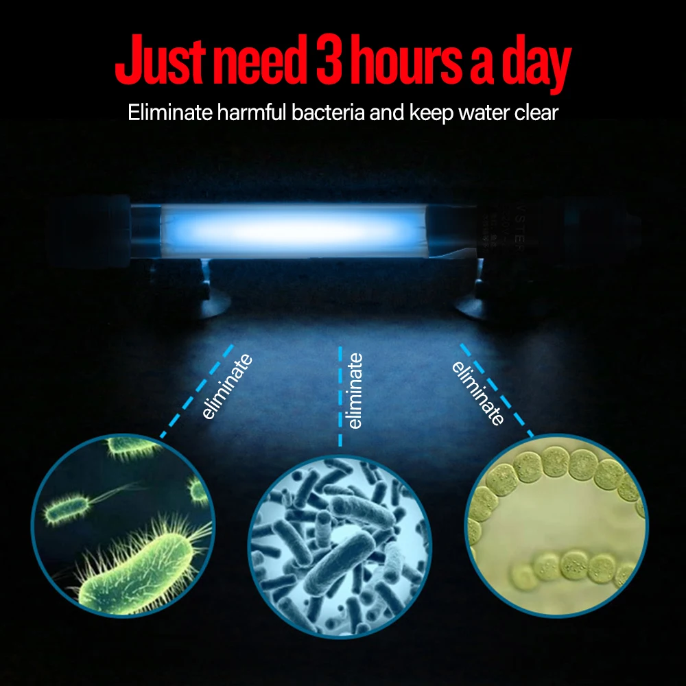 Эта бактерицидная лампа может очистить воду и удалить бактерии, подходит для аквариумов. Он поставляется с функцией настройки времени, очень удобно.