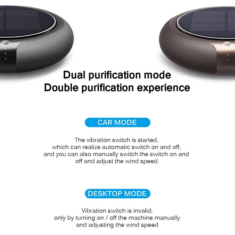 Автомобильный очиститель воздуха может быстро поглощать волосы, протирать и очищать вредных газов без вторичного загрязнения. Фильтр PM2.5, в течение 2 часов может достигать 99% антибактериального уровня.