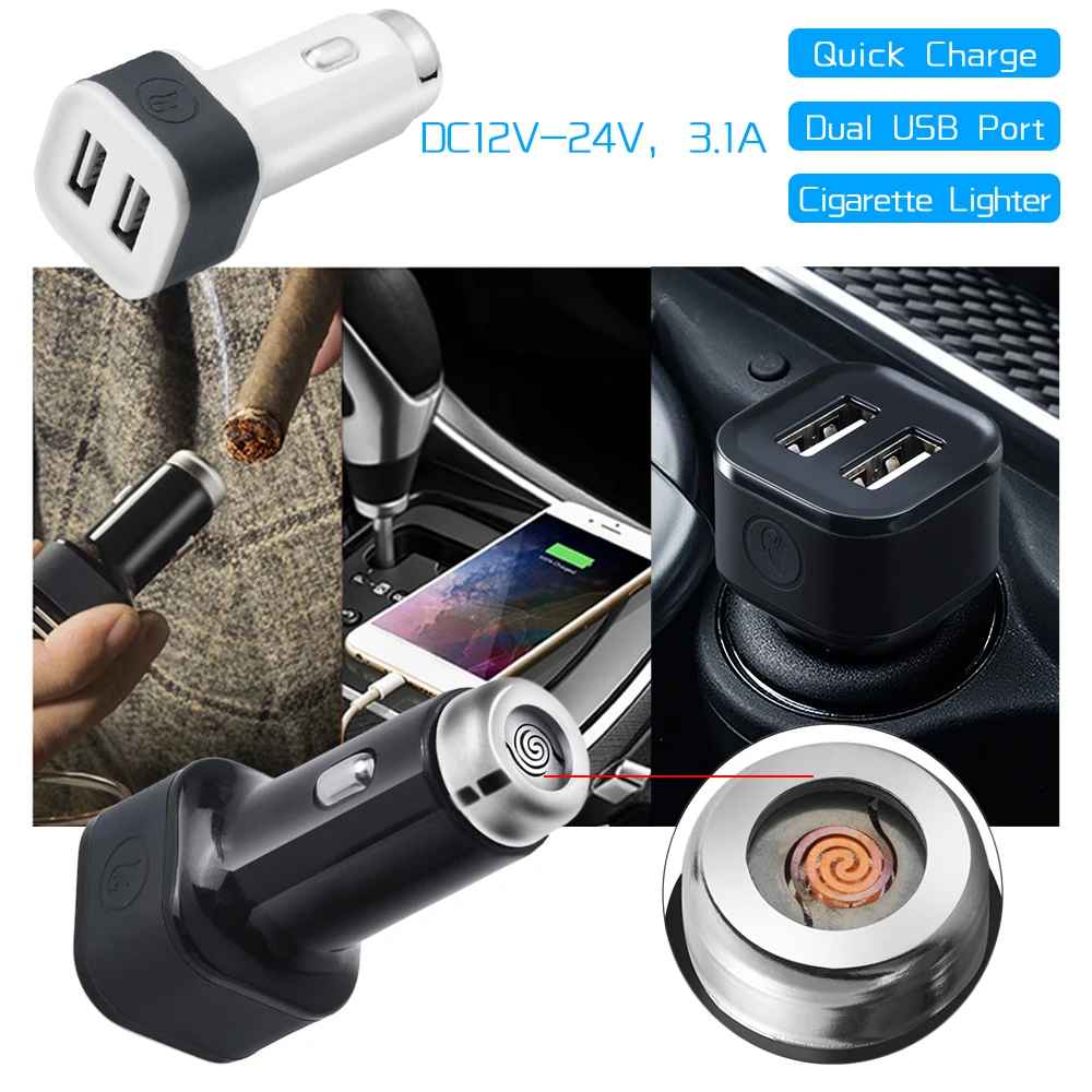 2 в 1: автомобильное зарядное устройство интегрировано с прикуривателем. Изысканный и легкий, легко носить с собой.
