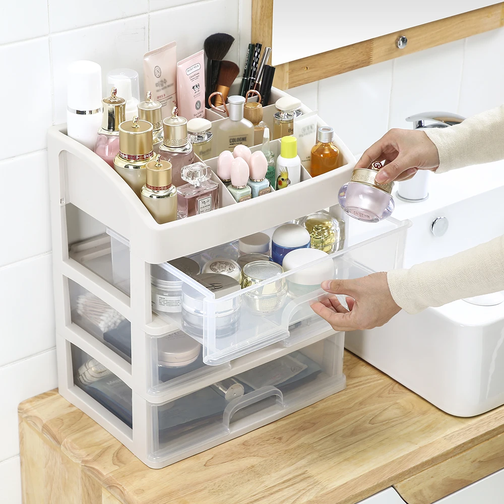Большой органайзер для макияжа, 3 слоя ящика, косметический чехол для хранения, органайзер для макияжа, Ювелирное Украшение для ногтей, очищающая хлопковая коробка для хранения