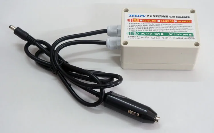 Модель изделия: TL-8-9 Применение продукта: Автомобильный литиевый аккумулятор Характеристики продукта: постоянный ток и Зарядка от постоянного напряжения Входное напряжение: 11-15 В постоянного тока или West-v (Необходимо подгонять) Входной ток: <15A Входная вилка: разъем прикуривателя Длина входной линии: около 80 см Выход напряжение: DC 12,6 V/14,6 V/14,4 V Выходное напряжение: 9A / 8A Выход штекер AC/DC 5,5x2,5 (общий для 2,5 или 2,1) Другие вилки должны быть настроены Длина выходной линии: около 40 см Общая мощность: <150 Вт Эффективность преобразования: 85% до 96% Входная защита: 20А предохранитель Защита от короткого замыкания: нет Высокотемпературная защита: Да Предотвращает обратное время зарядки: Да Полная Автоматическая остановка: Да Шум вентилятора: около 20DBA Вентилятор с контролем температуры: нет Светильник индикатора: Красный светильник (время зарядки), Синий светильник (полный или пустой) Характеристики зарядки: Волосы для зарядки постоянного тока Полностью заряженный волос с постоянным напряжением