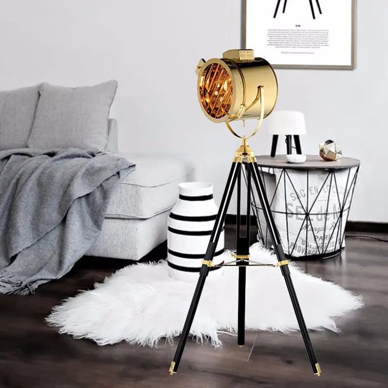 Скандинавский Золотой Серебряный Деревянный студийный ретро-Трипод креативный сценический напольный светильник для гостиной светильник для поиска Напольная Лампа из нержавеющей стали