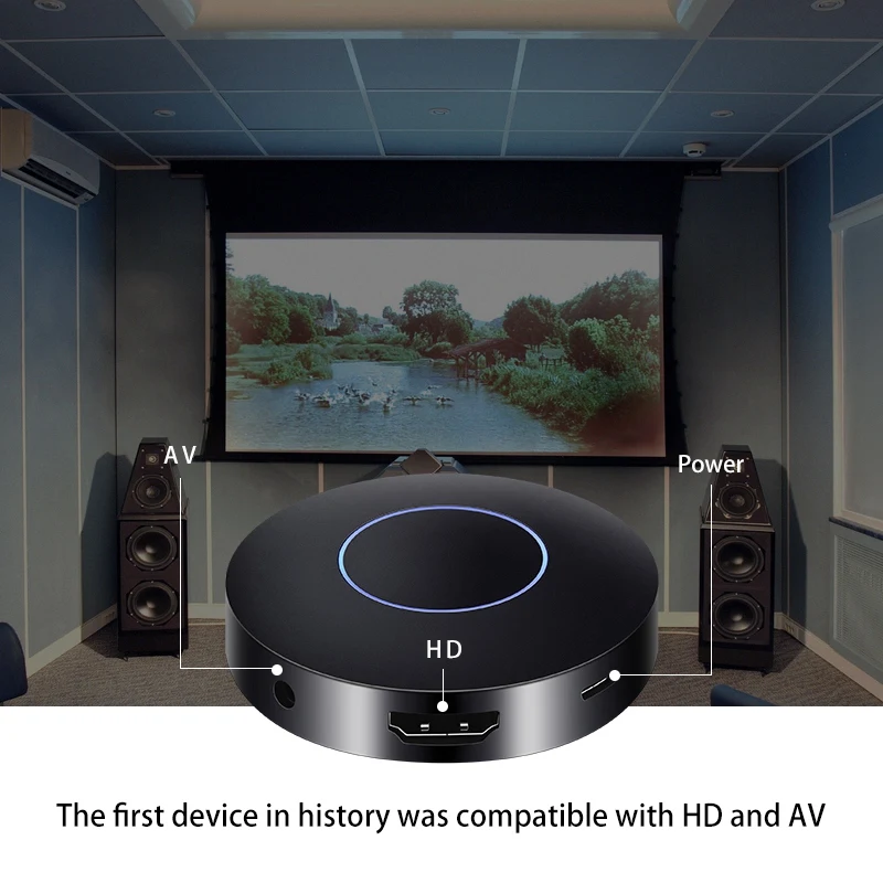 5. Как первая версия двойного выхода HDMI + AV для зеркального отображения нескольких устройств, отверстие AV используется не только как метод вывода видео, но также может использоваться для подключения динамиков и создания домашнего кинотеатра.