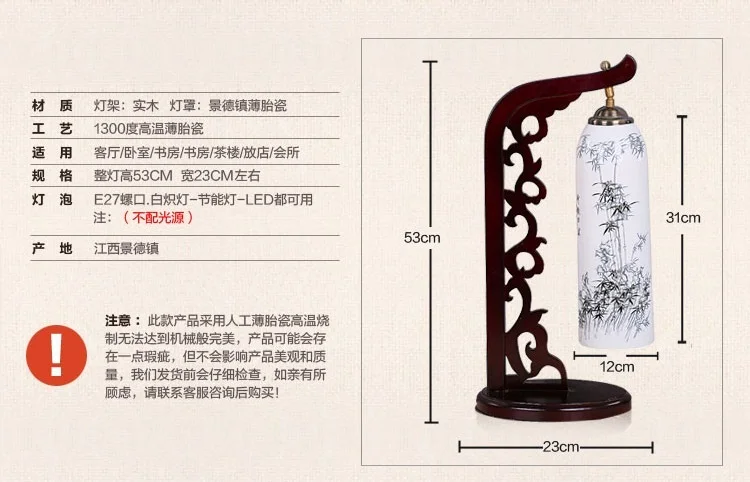 Мощность: 5-40 Вт Напряжение: 90-260 В Тип лампы: E27 Материал корпуса: Керамика + деревянная основа Посылка 1 настольная лампа