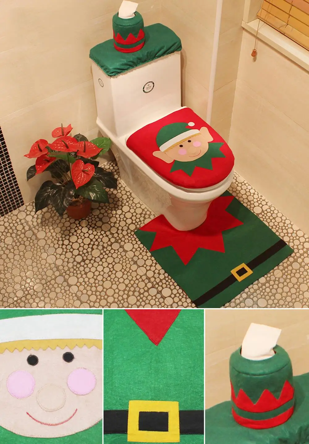 Отзывы о 3pcs/set Christmas Bathroom Decorations Toilet Seat Cover + U-shaped Rug Tank Lid & Tissue Box Set Ornaments | Дом и сад