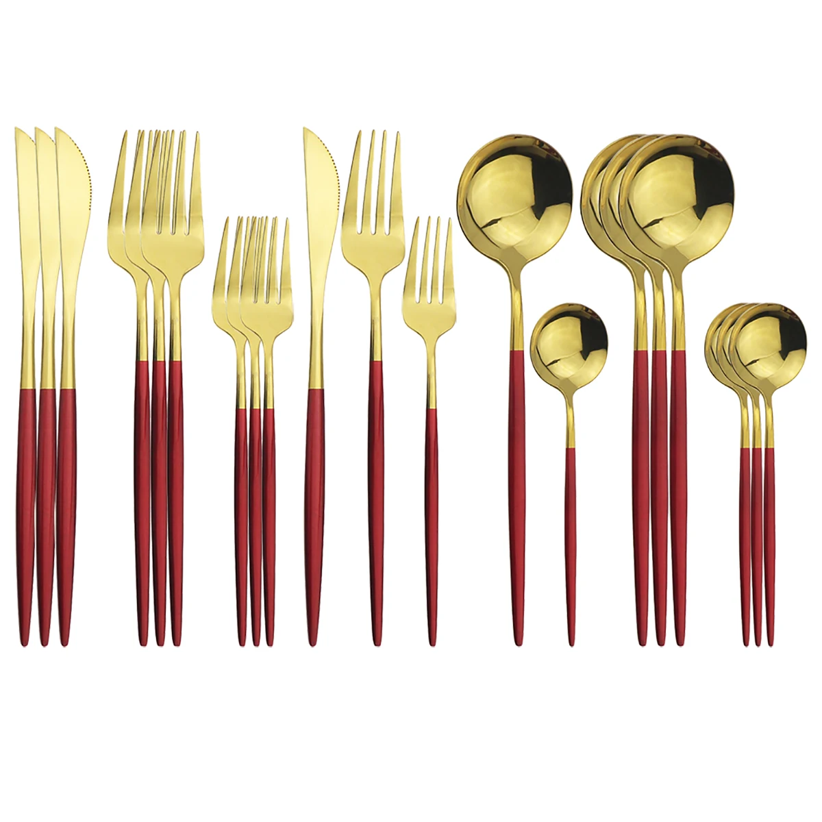 Отзывы о 20 шт красный набор столовых приборов золотистого Нержавеющая сталь посуды Ножи