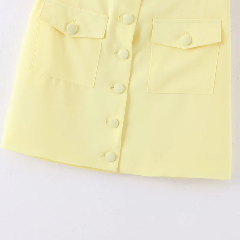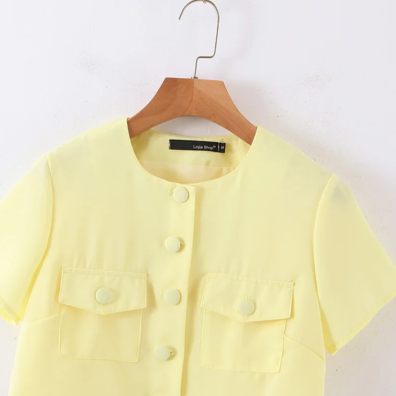 Название продукта: Звездный модный костюм Za для женщин, весна 2020, Повседневная тонкая короткая рубашка с круглым вырезом и карманом, однобортная Женская юбка с высокой талией