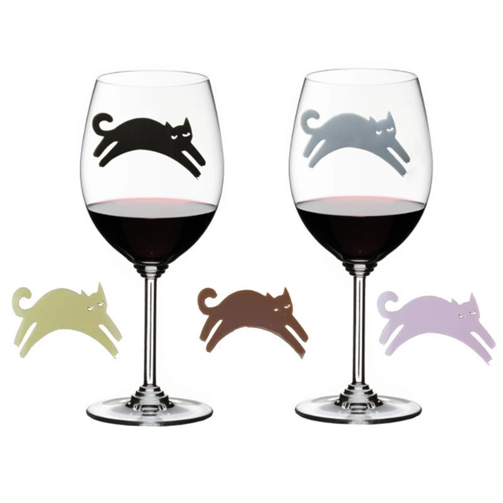 Отзывы о 12 шт. маркер на стакан для вина кошачий дизайн креативная силиконовая наклейка