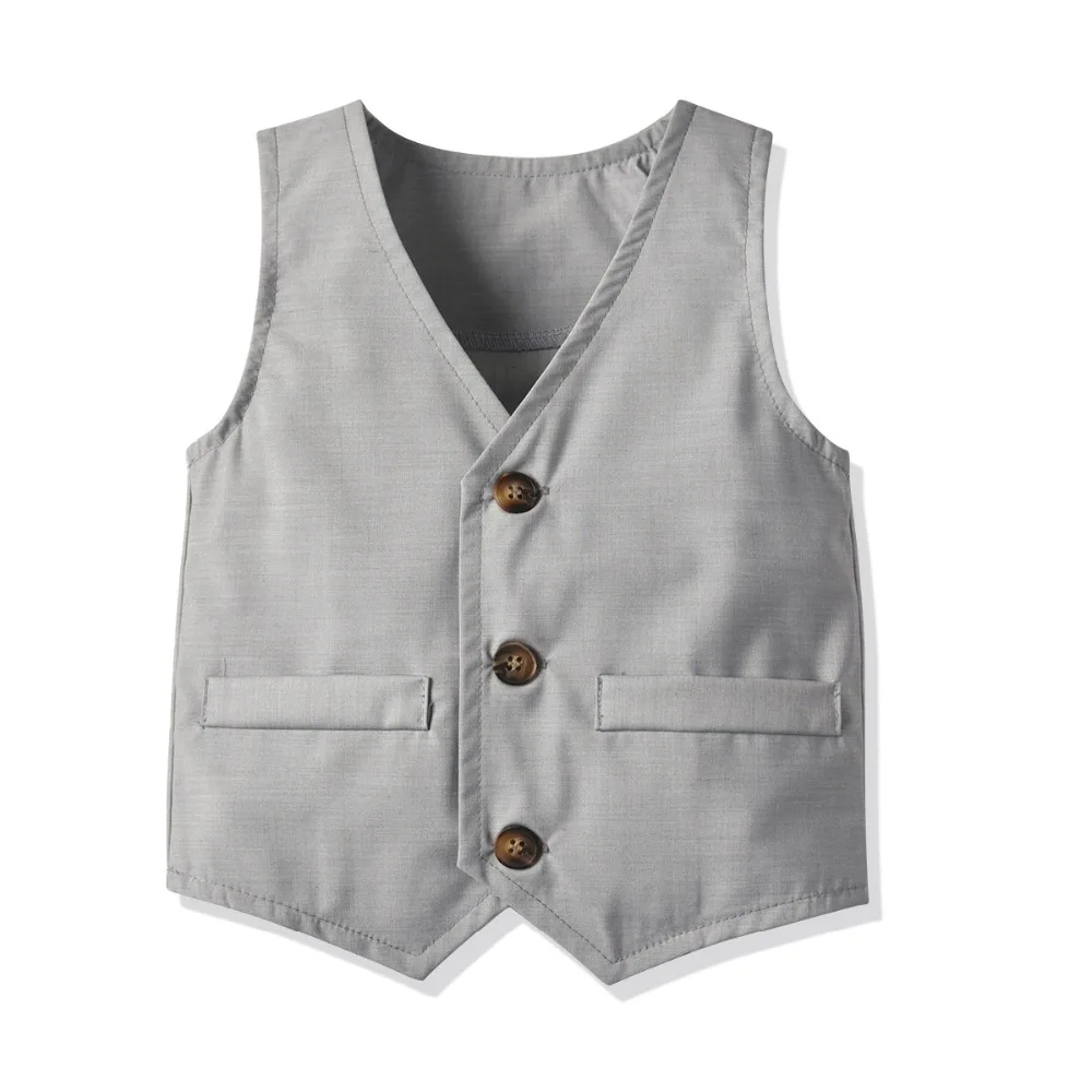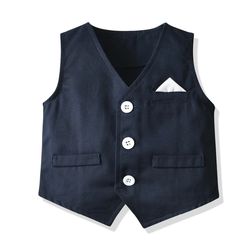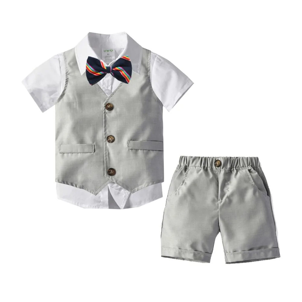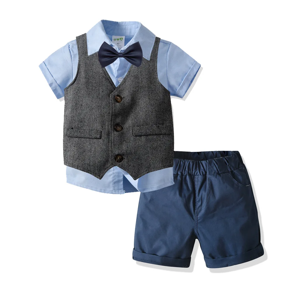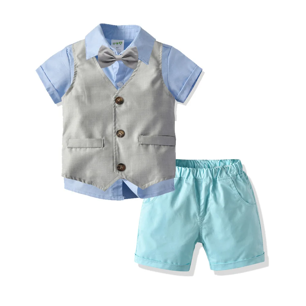 Летняя одежда для маленьких мальчиков, официальное платье, джентльмен, галстук-бабочка, рубашка, жилет, шорты, комплекты, костюм для вечеринки и свадьбы, Детский костюм