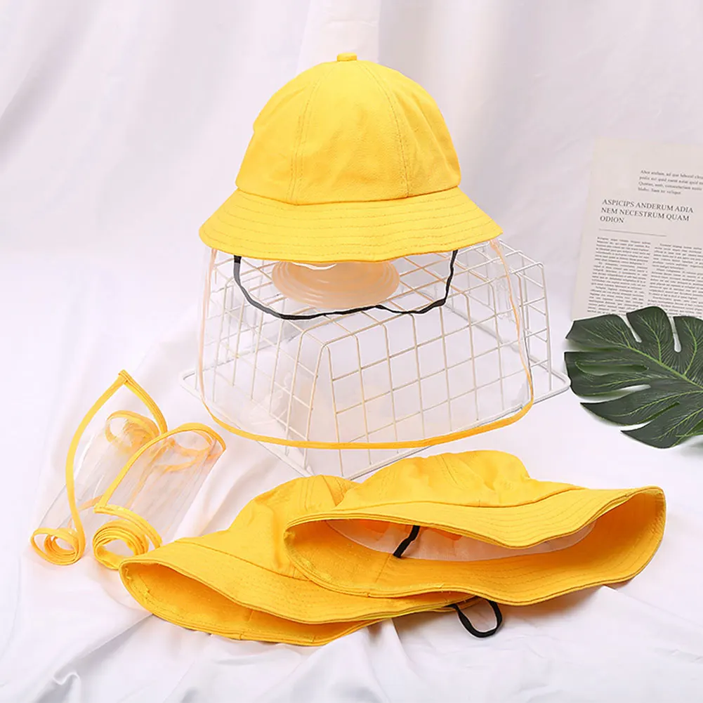 Защита лица может быть обеспечена путем ношения защитного колпачка и маски для предотвращения распространения капель во всех направлениях. Маску можно протереть дезинфицирующим средством и повторно использовать для защиты детей во всех направлениях. После вспышки, передняя маска может быть удалена, чтобы стать обычной шляпой дикого рыбака.