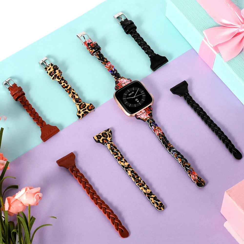 Отзывы о Кожаные ремешки для Fitbit Versa/Versa 2 мужчин и женщин тонкие плетеные ручной работы