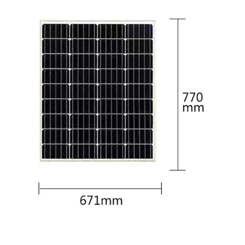 Модуль Pmax :70 Вт Размер и количество ячеек: 156 мм * 78 мм 36 шт/4*9 Допуск по уровню поверхности: ± 3% ВМП: 17,8 V Чертёнка: 3.94A Voc: 21,8 V Isc :4.33A Макс. Syst.Oper. Напряжение: 1000 в Диоды: 2 by-pass Размер: 770*671*35 мм Вес: 6,3 кг Рабочая температура. Объем:-40 градусов t0 80 градусов Относительная влажность: от 0 до 100% Сопротивление: 227 г стальной шарик падает с 1 м высокой и 60 м/с скорости ветра Гарантия: Pm не менее 90% в 10 лет и 80% в 25 лет