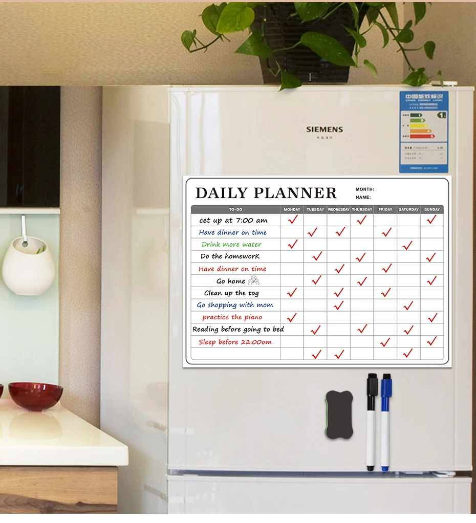 Оптимизируйте свое время для максимальной эффективности с помощью этого магнитного календаря! Просто прикрепите его к холодильнику и используйте его в качестве еженедельного или ежемесячного органайзера, чтобы записывать каждое важное событие для вас и вашей семьи!